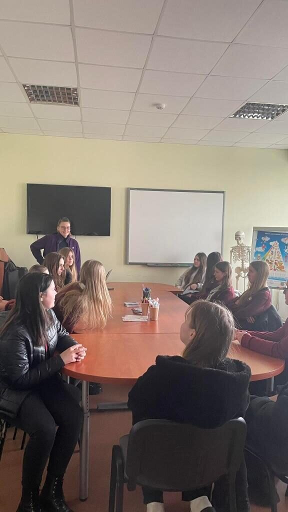 Plungės rajono savivaldybės visuomenės sveikatos biuro specialistė Giedrė Bubelienė mokiniams pristatė savo karjeros kelią, paaiškino biuro veiklą. Ypatingas dėmesys yra skiriamas vaikų ir moksleivių ligų profilaktikai, jų sveikos gyvensenos įgūdžių ugdymui. Specialistė aiškino mokiniams sveikatos išsaugojimo ir stiprinimo būdus bei mokė juos taikyti praktiškai.
