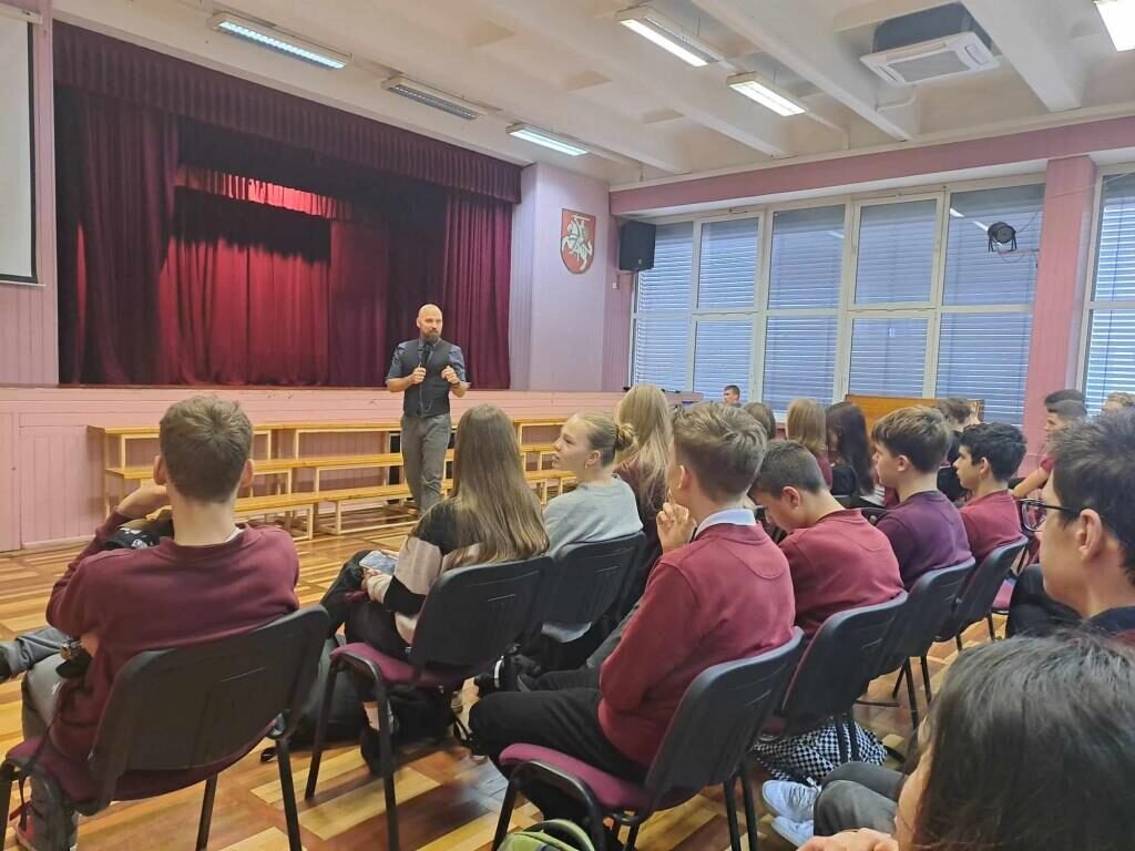Lapkričio 10 dieną mūsų mokyklos vyresniųjų klasių mokiniai turėjo galimybę susitikti su žinomu renginių ir TV laidų vedėju R. Žiogu. Pasakodamas savo gyvenimo istoriją, R. Žiogas pabrėžė tuos savo gyvenimo momentus, kurie paskatino jį nugalėti savo baimes, padėjo įveikti iškilusius iššūkius bei išgryninti vertybes. Kalbėdamas jis siekė motyvuoti jaunimą susikurti savo tikslus ir, nepriklausomai nuo jų socialinės padėties ir aplinkos, jų siekti.