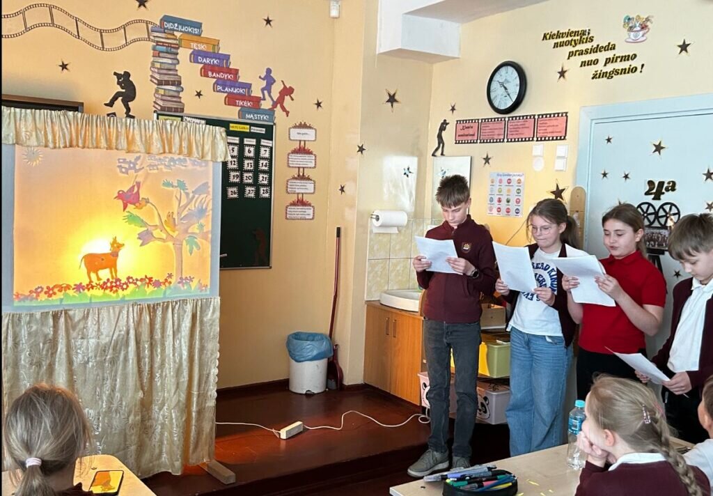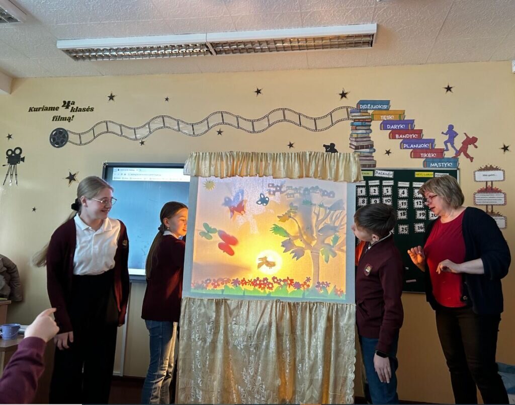 Balandžio 17 d. mokykloje vyko savarankiško mokymosi diena. 4 a klasės mokiniai į lietuvių kalbos pamokas pasikvietė mokyklos bibliotekininkę Kristiną Vanskevičienę, kuri supažindino su šešėlių teatro meno galimybėmis. Ieškodami informacijos apie šešėlių teatrą sužinojo, kad norint sukurti šešėlių vaizdus ekrane, paprastai kartu su muzika ar pasakojimu reikia ir šviesos šaltinio, žmogaus kūno arba pagamintų figūrėlių (personažų valdymui) metamo šešėlio bei tuščio balto ekrano.